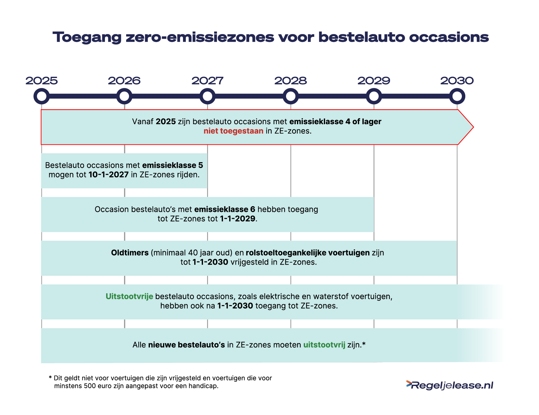 Bekijk de afbeelding hieronder voor de uiterlijke toegangsdata en overgangsregeling voor jouw bedrijfswagen: